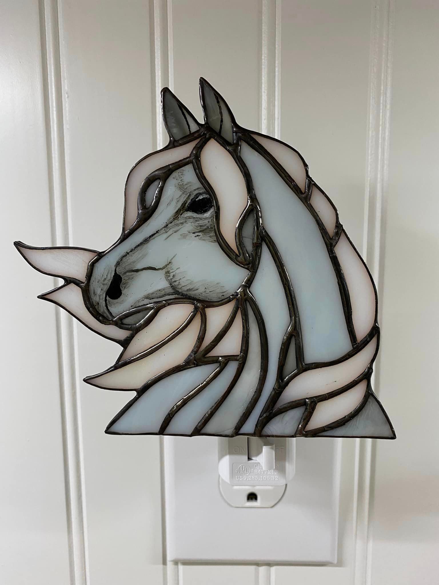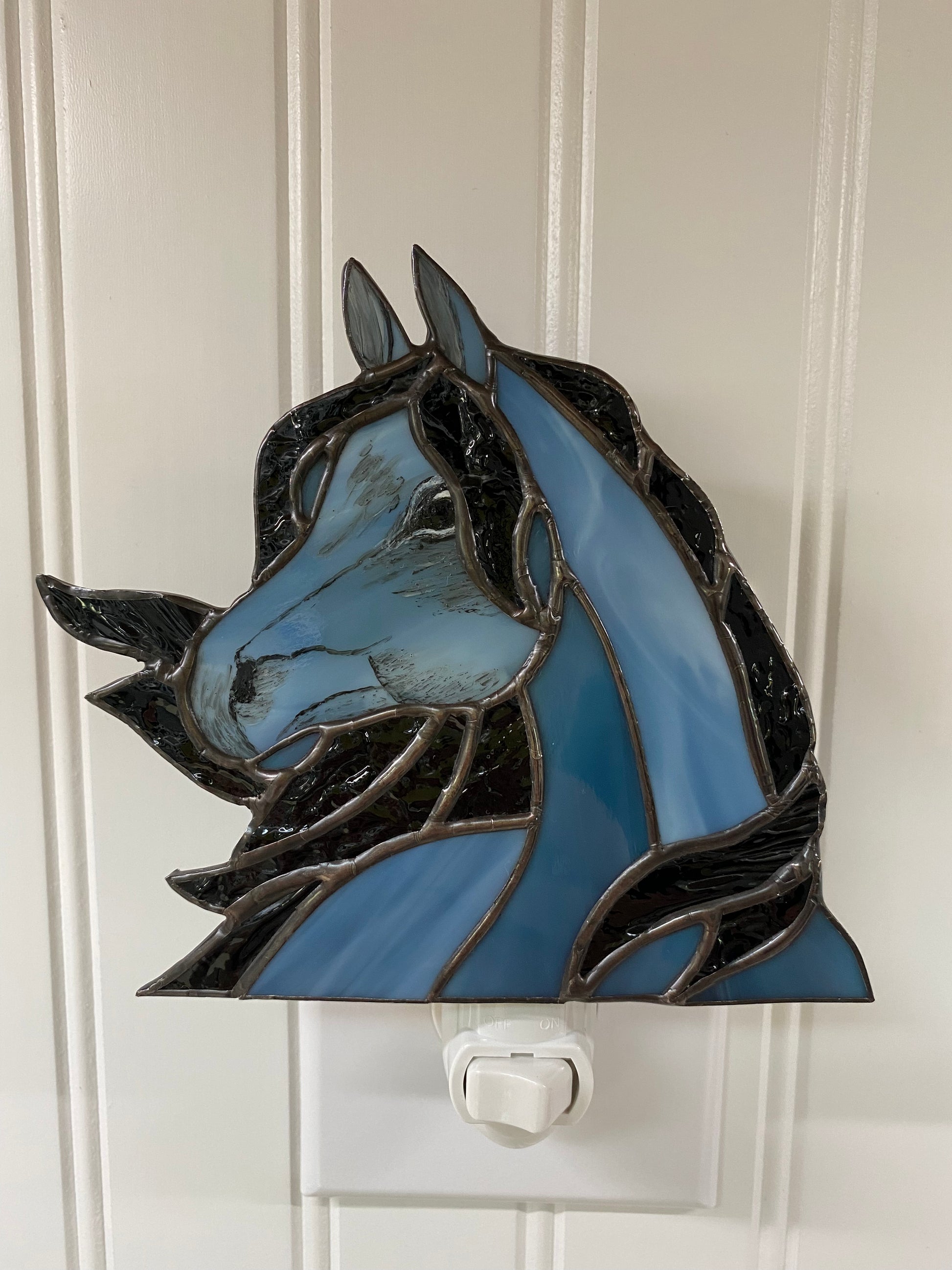 This nightlight can be created in many colors as you can see displayed here. You can use the Pre-order Form to request a particular color if you don't see what you want in this current selection. Finished size approx. 5.5"w x 5"h (excluding the nightlight base).