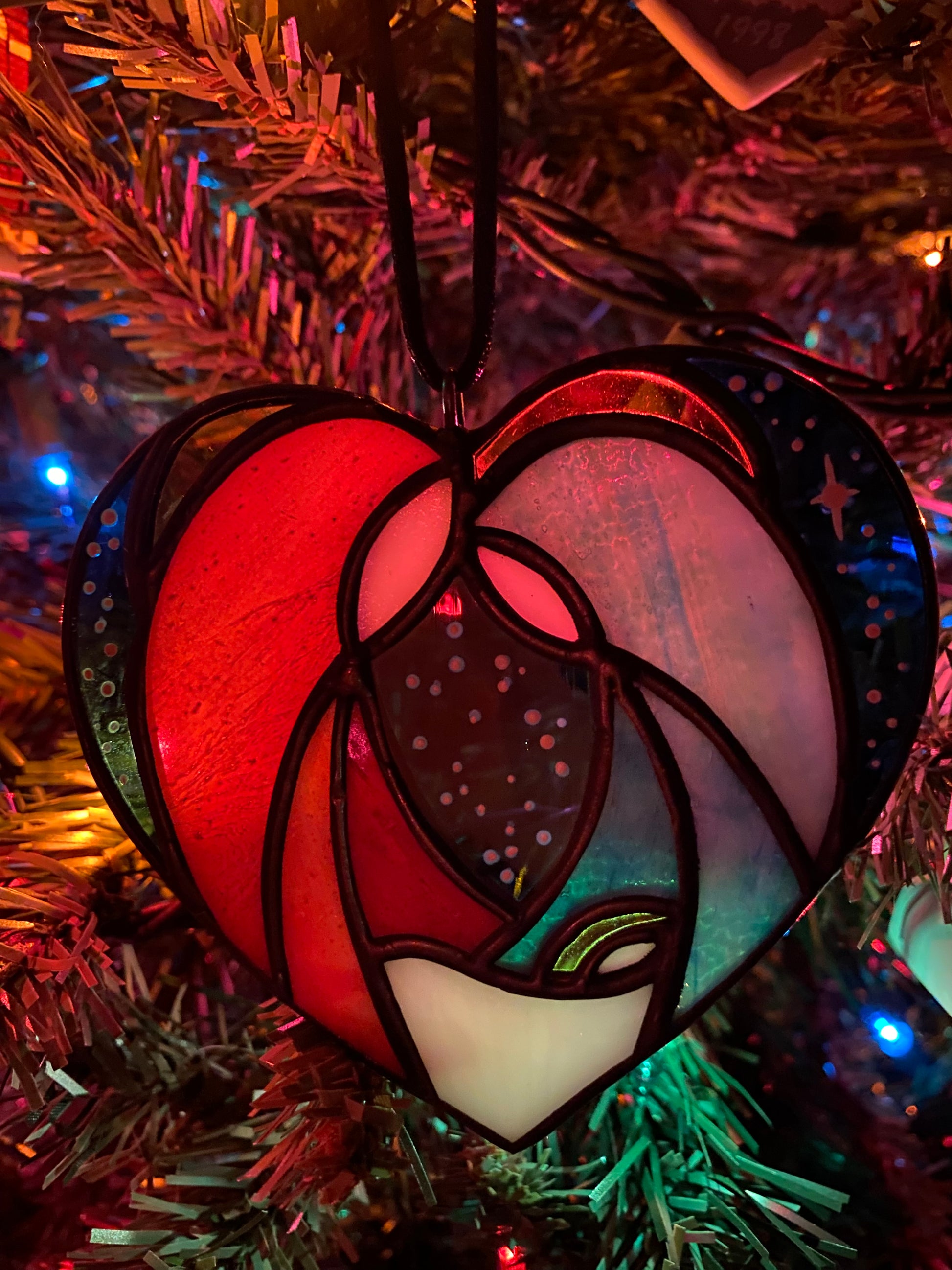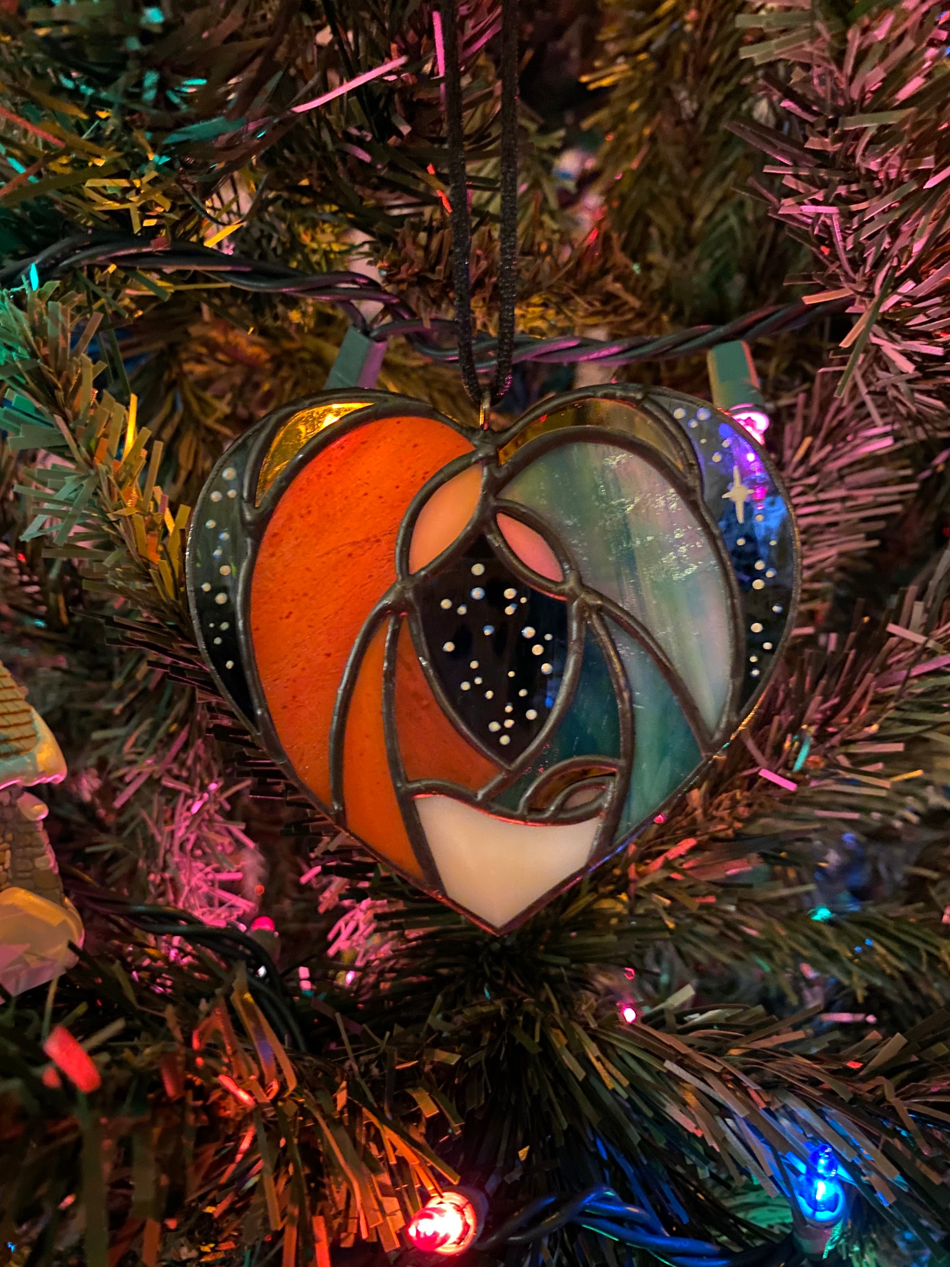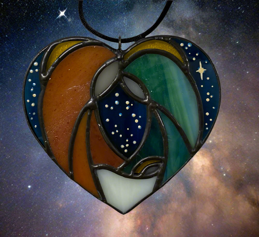 Discover the love of God in this mini-tableau of the holy family, with a Bethlehem night sky backdrop made from Oceanside Deep Steel wispy water glass. Each star is carefully hand-painted with white and iridized paint, then heat-treated for a lasting finish.
