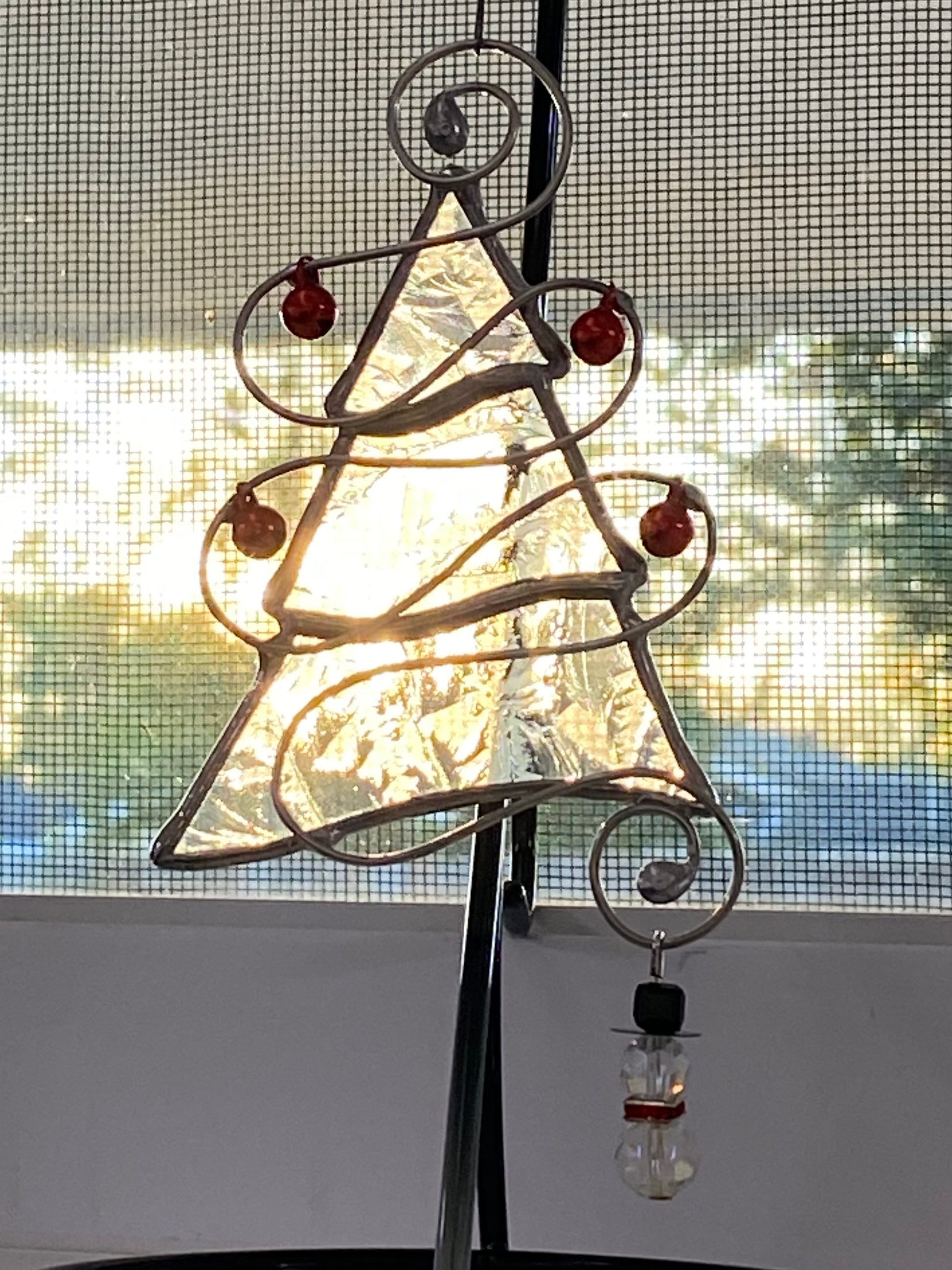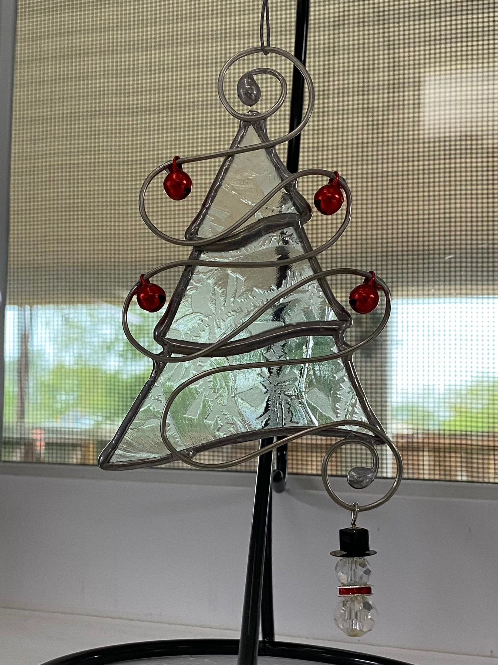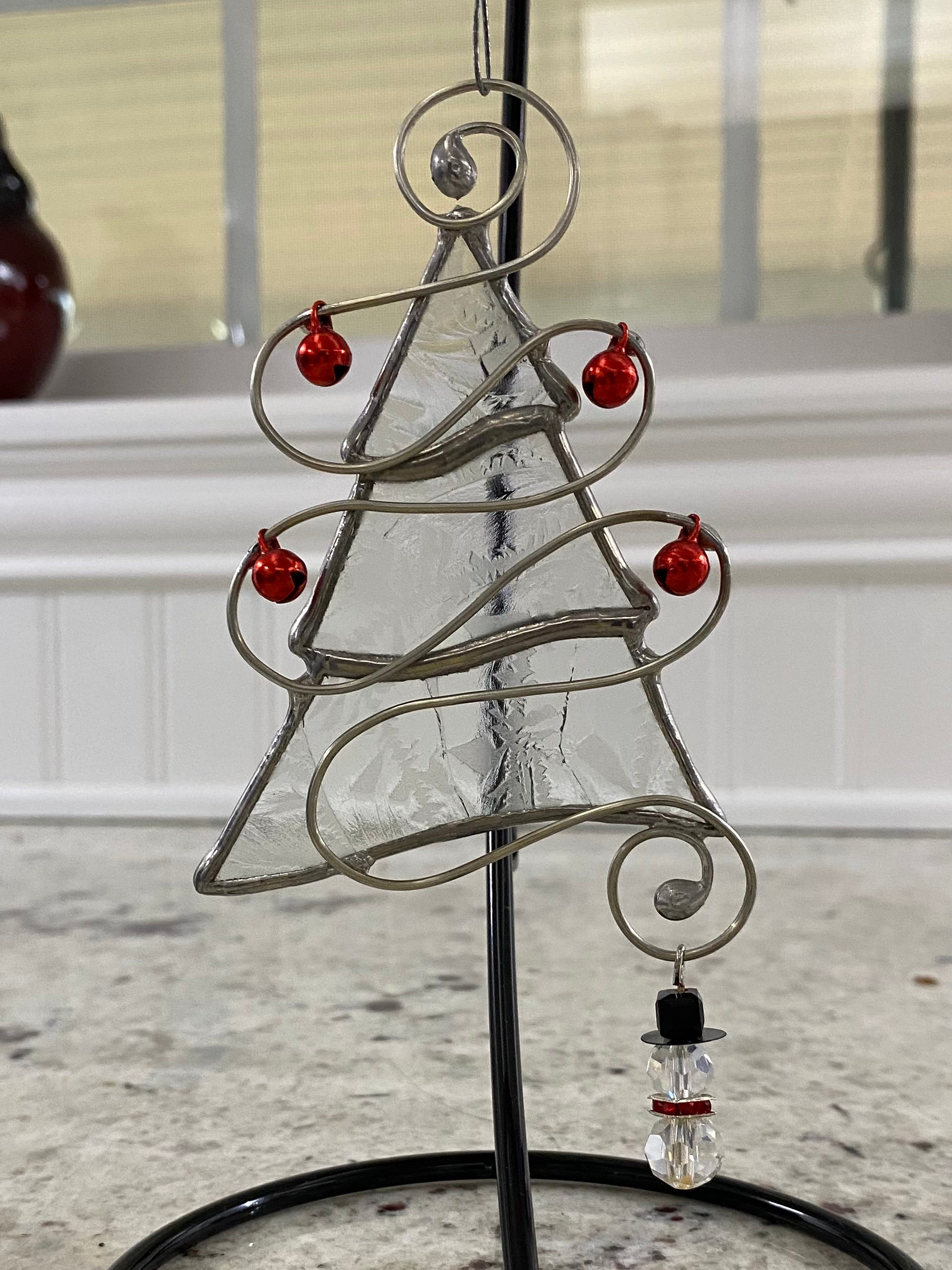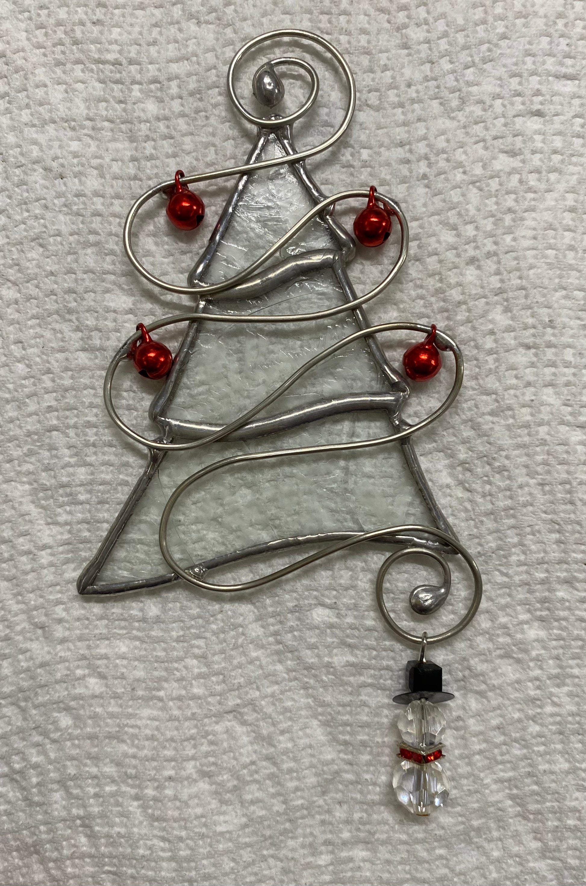 Tree Christmas Ornament - Clear Snowflake Glass with Snowman Charm